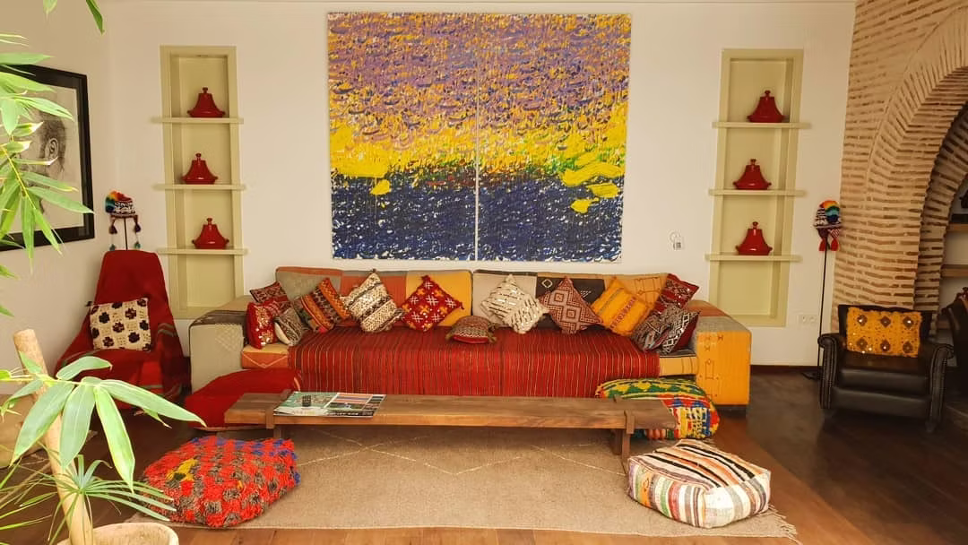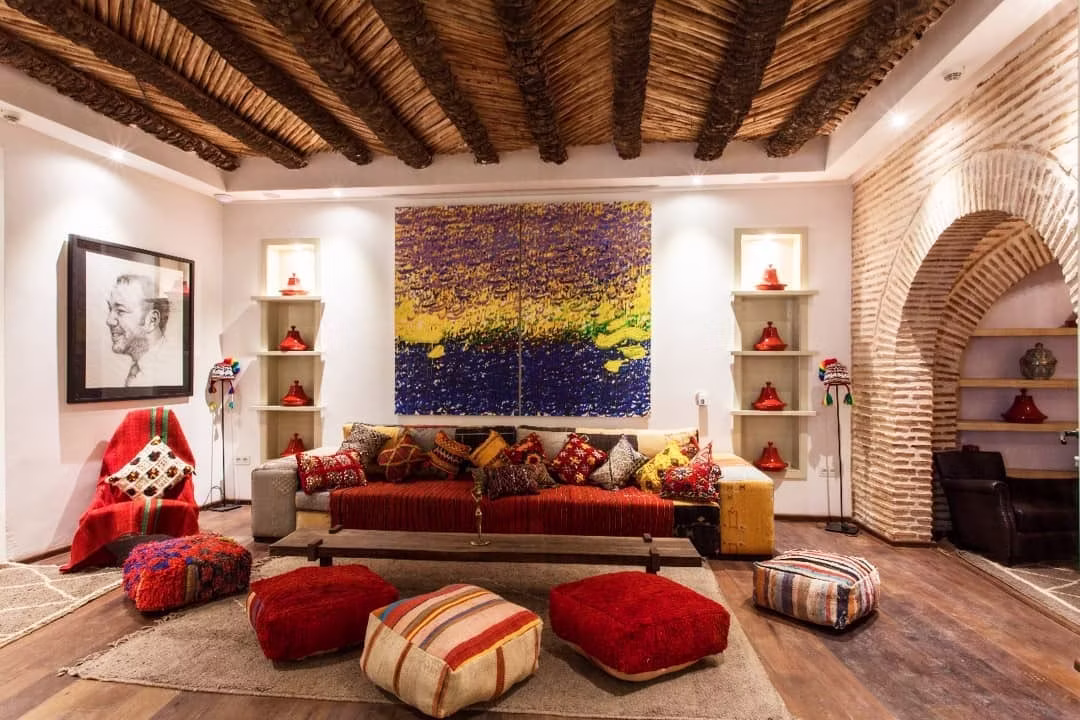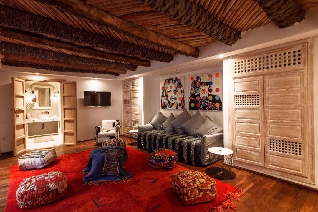 BCK Art Riad à Marrakech réinvente l’architecture traditionnelle du riad avec une approche contemporaine subtile. Organisé autour d’un patio central végétalisé, l’espace intérieur dialogue avec la lumière naturelle, les jeux d’ombre, et les percées visuelles qui relient les niveaux et les zones de détente.