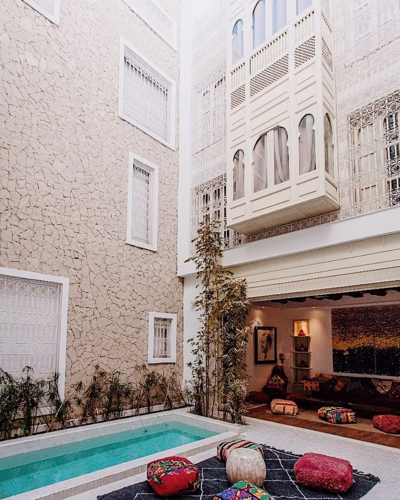 La conception met en scène volumes épurés, circulation fluide et intégration du paysage urbain de la médina, tout en offrant des terrasses, piscines et espaces de bien‑être qui prolongent l’expérience sensorielle vers l’extérieur. L’identité architecturale du riad s’inspire de la tradition marocaine tout en adoptant une esthétique contemporaine soignée, créant une atmosphère intime, lumineuse et inspirante.