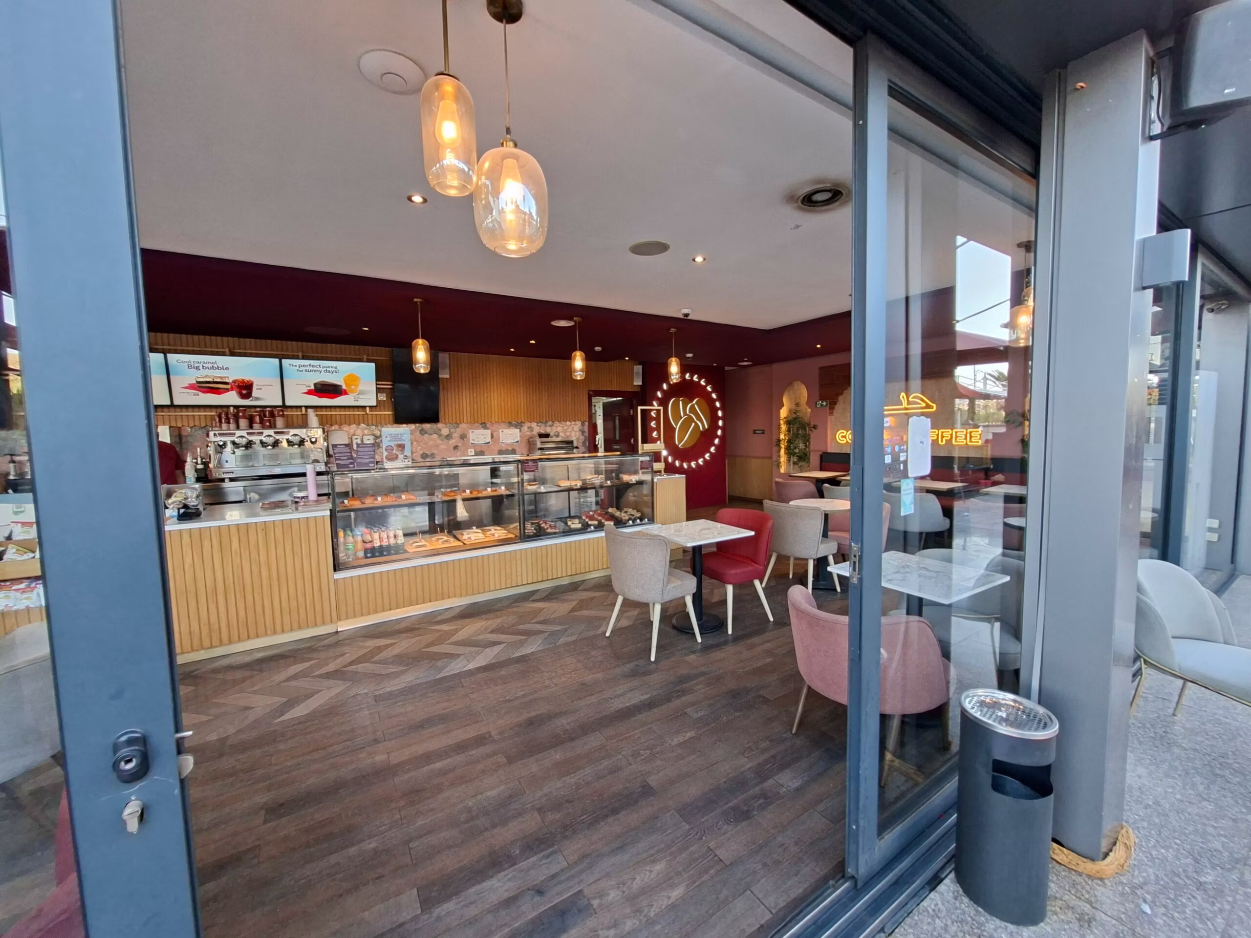 Le mobilier sur mesure, incluant comptoir barista, vitrines et banquettes, et l’organisation fluide des parcours clients entre commande, attente et consommation, garantissent une expérience moderne, agréable et conforme aux standards internationaux de l’enseigne.